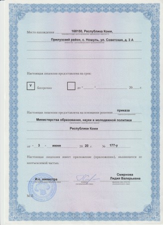 Республика Коми Прилузский р-н с. Ношуль ул. Советская д.3-а